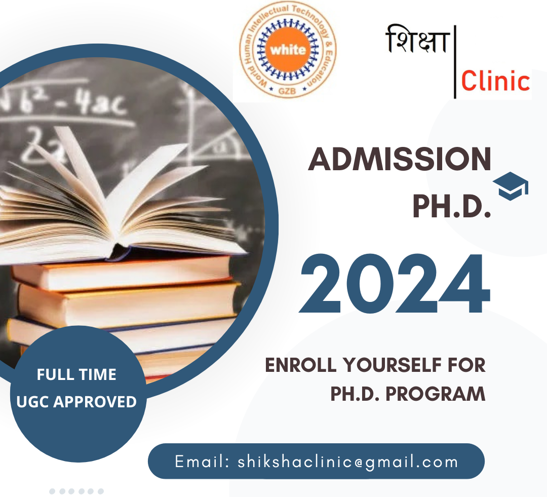 Three Years Course (Full-Time). Various Ph.D. entrance examinations such UGC NET, GPAT, JEST, CSIR NET, GATE etc. are conducted for Ph.D. Admissions. The most popular entrance examination for Ph.D. Admission is UGC-NET which is conducted twice every year for Ph.D Admissions.